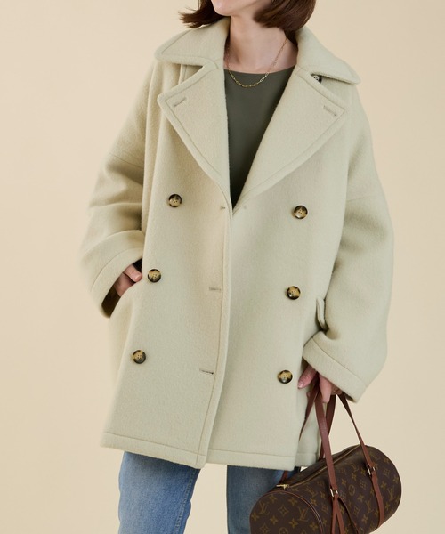 ご好評いただいていたmarmorsのPコートがブラッシュアップして登場。以前よりも丈を短くし、程よくヒップをカバーするベストな丈感になっています。ややオーバーサイズのコートなのでニットもしっかり着込めます。スロートタブもついており、閉めれば雰囲気も変わり防風にも◎上品な見え方で、定番アイテムとしてワードローブに加えておきたいアウターです。【fabric】上質で風合いがよく、あたたかさと軽さを兼ね備えた二重織ショートビーバー。--------------------------------------透け感:なし裏地:あり伸縮性:なし光沢感:なし生地の厚さ:普通ポケット:あり--------------------------------------ドライクリーニング*詳しくは商品の洗濯表示にてご確認をお願い致します。【coordinate】厚手のニットも着こめるゆったりシルエット。ヒップが隠れる丈感に設定し、ベーシックながらもトレンド感のあるスタイリングがお楽しみいただけます。ON/OFF兼用で活躍してくれる、大人のアウターです。--------------------------------------【marmors / マルモア】《 marmors 》 マルモアとは、1人1人個性の違う、自立した女性のように色や模様がいろいろで一つとして同じものはなく、きめ細やかで、研磨すると美しい光沢をもつという性質のある大理石のローマ語【marmor】から由来.光のなかできらめく結晶石を意味し、美・権威・永遠を象徴する.クリーンな洗練カジュアルをコンセプトにcomfortableな着心地・風合いのminimal なアイテムとメンズライクなアイテムを融合し女性らしいstylingを提案。その人の新たな定番となり、大切に永く愛用していただけるような日常着をめざします--------------------------------------*商品画像はできる限り実物の色に近づけるよう徹底しておりますが、お使いのデバイスのモニター設定、お部屋の照明等の閲覧環境により実際の色味と異なって見える場合がございます。*画像の商品はサンプルです。実際の商品と仕様、加工が若干異なる場合があります。予めご了承くださいませ。▼商品のお気に入り登録お気に入りアイテムの値下げ・再入荷・在庫1点などの通知を受け取ることができます。 ▼ブランドのお気に入り登録新商品や再入荷、クーポン配布などのお得な情報を受け取ることができます。