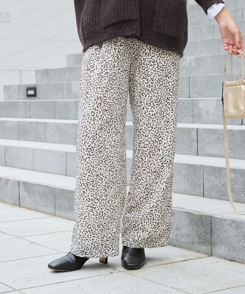 MICA&DEALオリジナルのレオパード柄パンツ。ストレートシルエットで、ウエストはゴム仕様のイージーな履き心地。ふんわりとした柔らかい風合いでサラッと着用でき、裏地も付いているので透けも気になりにくいです。【fabric】落ち感があり、ソフトタッチの微起毛素材にオリジナルプリントした生地。--------------------------------------透け感:なし裏地:あり伸縮性:なし光沢感:なし生地の厚さ:普通ポケット:あり--------------------------------------水洗い可*詳しくは商品の洗濯表示にてご確認をお願い致します。【coordinate】ニットやシャツとの相性もよく、スタイリングのワンポイントになるアイテムです。落ち感のあるパンツなので、オーバーサイズのトップスでも、バランス良く着用できます。こちらの商品は同素材でスカートも展開しています。レオパードプリントスカート/0125402323*商品画像はできる限り実物の色に近づけるよう徹底しておりますが、お使いのデバイスのモニター設定、お部屋の照明等の閲覧環境により実際の色味と異なって見える場合がございます。*画像の商品はサンプルです。実際の商品と仕様、加工が若干異なる場合があります。予めご了承くださいませ。▼商品のお気に入り登録お気に入りアイテムの値下げ・再入荷・在庫1点などの通知を受け取ることができます。 ▼ブランドのお気に入り登録新商品や再入荷、クーポン配布などのお得な情報を受け取ることができます。
