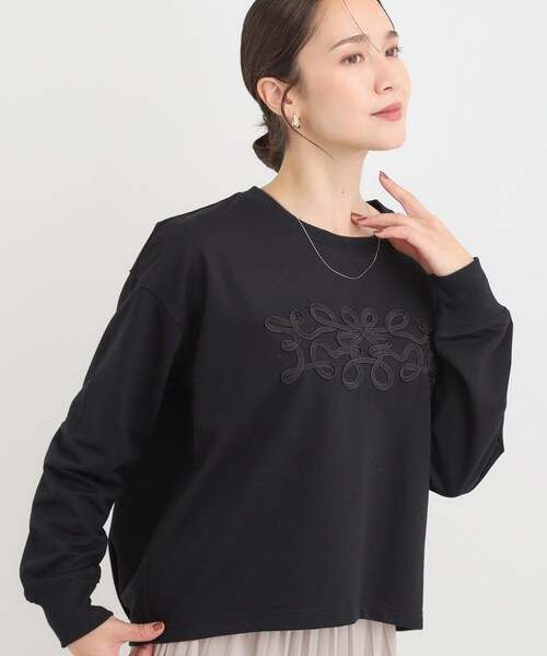 【デザイン】今年らしいコード刺繍のミニ裏毛トップス。トレンド感あるモチーフ柄、定番のレタリングロゴ、やわらかな印象のお花柄のアソート展開です。カーディガンやジャケットのインナーとしても使え、1枚で着映えて日常のオシャレにオススメです。【スタイリング】1枚で着用するのは勿論、カーディガンのインナー合わせなどにもオススメです。ワイドデニムやチェックスカートなどと合わせた大人カジュアルな着こなしが素敵です。【素材】やわらかなミニ裏毛素材です。※照明の関係により、実際よりも色味が違って見える場合があります。また、パソコン・スマートフォンなどの環境により、若干製品と画像のカラーが異なる場合もございます。モデル情報:身長163cm B81 W59 H88 着用サイズ:02(M)店舗へのお問い合わせ商品番号:C62-14320●製品寸法:01(S):着丈54cm B118cm 袖丈50cm 肩幅53cm02(M):着丈56cm B122cm 袖丈51cm 肩幅54cm03(L):着丈58cm B126cm 袖丈53cm 肩幅55cm04(LL):着丈60cm B130cm 袖丈55cm 肩幅57cm備考: