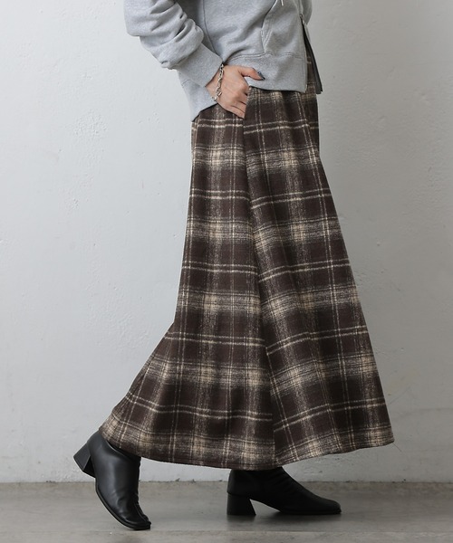 【秋冬素材×チェック柄の大人っぽスカート】起毛素材と大きめのチェック柄がかわいいフレアスカートです。裾に向かって広がるフレアシルエットなのでスタイルアップ効果も。秋冬の素材感と大人っぽいチェックデザインで季節感も取り入れられます。ウエストの後ろ部分がゴムになっているのでストレスフリーに穿いていただけます。また、両サイドには大きめのポケットが2つあるので機能性も◎【商品ポイント】・秋冬素材で季節感も◎・フレアシルエットでスタイルアップ効果大・ゴム仕様のウエストでストレスフリー----------------------------------------------------■商品特徴洗 濯 方 法 :家庭洗濯不可(ドライクリーニング可)裏 地 :なし透 け 感 :なし伸 縮 性 :なし光 沢 感 :なし生地の厚さ:普通----------------------------------------------------■素材ポリエステル90%, 毛10%----------------------------------------------------※着用、お取り扱いの際は、商品についている品質表示とアテンションタグを必ずご確認下さい。※商品タグに記載されている商品名がWEBでの表記名と異なる場合があります。※実際の商品と仕様、加工、サイズが若干異なる場合がございます。※照明の関係により、実際よりもやや明るく見える場合がございます。またパソコンなどの環境により、若干製品と画像のカラーが異なる場合もございます。予めご了承くださいませ。【お気に入り登録】してお得な情報をCHECK!!・「商品のお気に入り登録」で再入荷通知や、ラストの通知、セール通知も受け取ることができます。・「ブランドのお気に入り登録」で新商品や再入荷など、お得な情報を受け取ることができます。