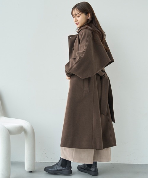 後ろ姿まで絵になる、しなやかな女性らしさを引き立てるロングコート。 優しげな温もりを感じる杢調のウールライク生地が、シーズンムードを高めながら上品な印象を演出します。 ふんわりと広がるフレアヨークが生み出す立体感が、動くたびにやわらかな陰影を描き、どの角度から見ても美しいシルエットに。 クラシカルな雰囲気を引き立てるダブルボタン仕様で、凛とした存在感をプラスします。 ウエストには、前後どちらでも結べるリボンベルト付き。 落ち着いたトーンの中に、ほどよいボリュームスリーブとAラインシルエットが優しげなニュアンスを添え、冬のお出かけを品よく彩ります。 ・総裏仕立て ・ダブルボタン仕様 ・ウエストリボン付き(取り外し可) ・左右ポケット付き ◆Fabric◆ ・暖かくて動きやすい素材。 ◆Styling◆ ・タートルネックニットやブラウスをインナーにし、スキニーパンツやタイトスカートを合わせるのがおすすめ。 ・スウェットやオーバーサイズのニット、ワイドパンツと合わせれば、大人カジュアルな着こなしに。 ・コートの色に合わせて全身をワントーンで統一すると、洗練された印象に。 ~~~~~~~~~~~~~~~ 裏地 あり 生地の厚み 厚手 生地の透け感 なし 生地の伸縮性 なし 生地の光沢感 なし ~~~~~~~~~~~~~~~ ※染色・加工条件により色ごとの風合いに多少の差異が生じる場合がございます。品質に問題はございませんので予めご了承ください。 ※素材によってはやむを得ず染料や防カビ剤等、脱色による塩素の匂いが強いものがございます。 また、素材にアクリルを使用している場合は石油が原料の化学繊維のため、匂いに敏感な方はその匂いを感じてしまう事もございます。 臭いが気になる場合は水洗い・または陰干しされてからご着用いただくようお願いいたします。 ※大量生産のため糸始末が十分なされない場合がございます。気になる場合は出ている糸をはさみ等でお切りください。 ※画像の商品はサンプルのため、実際の商品とは色味・仕様・加工・サイズ等が若干異なる場合がございます。 ※商品によっては、2cm前後(ニットの場合は3cm前後)のサイズ誤差が生じる場合がございます。 ※撮影時の照明やお使いのパソコン・スマートフォンの設定等により画像の色が実物と異なって見える場合がございます 【mil/ミル】 低身長でもオシャレを楽しみたい そんな気持ちから生まれた 小柄さん向けレディースブランド。 ぴったり丈の感動をお届けします。 around150cm Produce by @chiii.yyy 【ブランド公式SNS】 Instagram: @mil_by.chiii 《お気に入り登録》でお得な情報がいっぱい ・「商品のお気に入り登録」で再入荷通知や、ラスト1点の通知、セール通知も受け取ることができます。 ・「ブランドのお気に入り登録」で新商品や再入荷など、お得な情報を受け取ることができます! ※ご注文いただいた予約商品のお届け時期の確認は、注文履歴ページより行えます。 ※他のキャンペーンにより、期間中に価格が変動する場合があります。 ※セールは予告なく終了させていただく場合もあります。