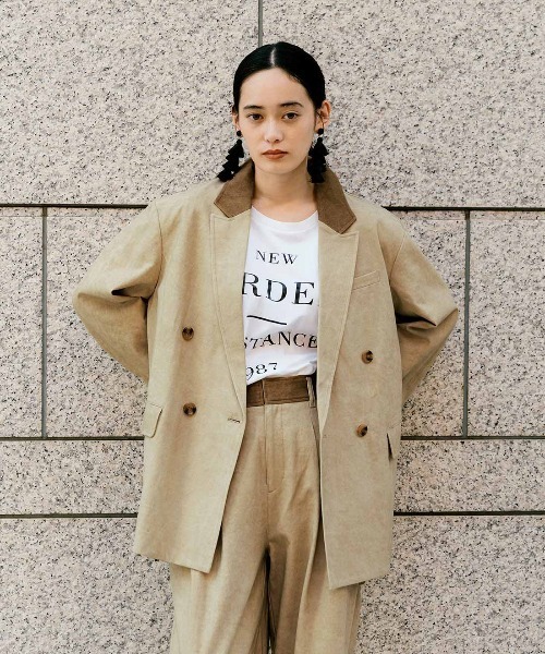素材の妙味で緊張感を和らげた、配色リラックスジャケット 知的でありながらお堅い印象に収まらない、こなれた雰囲気のリラックスジャケット。 ダブルでリラクシーなボックスシルエットです。 上衿だけを配色にした存在感ある上がりに。 ※フェリシモの商品には、紐などでくくられている紙タグは付属しておりません。