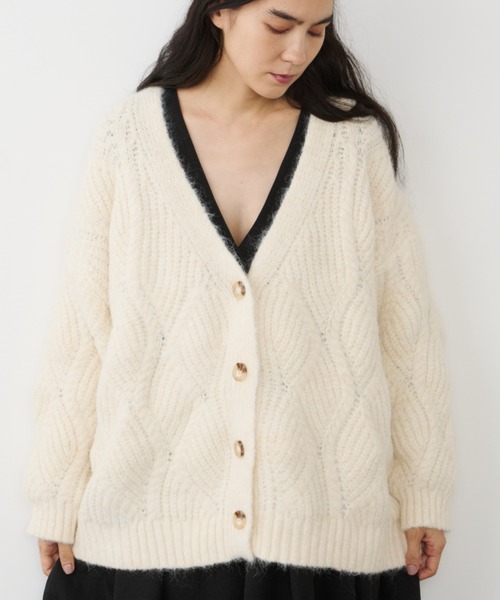 しっかり防寒ができる地厚なニットカーディガン シンプルなディティールと表面感のあるケーブル編みでコーディネートの主役に ■point ・厚手であたたかなのに軽い着心地 ・ボリュームスリーブのインナーにも羽織れる袖デザイン ・ニットアウターとしても ■styling ・ワンピーススタイルに羽織って 前デザインを邪魔しない深いVネック開き&オーバーシルエットでインナーを活かす羽織として ・カジュアルスタイリングのポイントに 羽織をパーカーからニットに変えるだけで女性らしいコーディネートになります。 ■fabric ポリエステル92% ナイロン4% ウール2% ポリウレタン2% この商品はニットを使用しています。 ・素材の特性上サイズや風合いに対象のばらつきが生じます。 ご了承ください。 ・ご着用の際はボタン・ヘアピン・指輪などによる引っ掛けにご注意ください。 お洗濯の際はお取り扱い表示の方法をお守りいただき、形を整えて平干ししてください。 ・保管の際はハンガーにかけず、畳んで保管をしてください。 ■size 身幅:66cm 肩幅:65cm 総丈:67cm 袖丈:45cm …………………… 透け感 : 無し 厚さ:厚手 伸縮性:あり お手入れ方法 手洗い × お取り扱い上のご注意: お手入れはドライクリーニングをおすすめします。 ニット製品ですので、縮みを防ぐためにご自宅での丸洗いはお避け下さい。 やむを得ずお水通しをする場合は長時間濡らしたままにせず、形を整えて乾かしてください。 詳しくは付属の「お取り扱い上のご注意」をご確認ください。 …………………… ※ご注意※ ・屋外の光や照明の当たり具合で、実際の商品の色味とカラー別画像の色味に若干の違いが発生する場合がございます。 ・詳細画像と併せてご確認の上、ご注文いただきますようお願い致します。 【 Libra Cue 】 “包み込むような気持ちよさを” 快適で豊かな生活を送りたい そんな暮らしの”きっかけ”となるデイリーウェアをご提案します 【 商品のお気に入り登録 】 完売カラーの再入荷通知やラスト1点の通知プライスダウンの通知も受け取ることができます。 【 ブランドのお気に入り登録 】 新商品や再入荷など、ブランドの情報をいち早くお知らせします。 ※ご注文いただいた予約商品のお届け時期確認は、注文履歴ページより行えます。