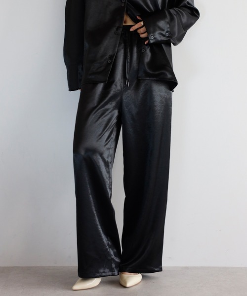 艶めくサテンで魅せるリラックスワイドパンツ光沢のあるサテン素材が、上品でラグジュアリーな雰囲気のパンツ。ウエストはドローコード入りのゴム仕様で、快適な穿き心地です。サイドにはポケットを備え、ワイドシルエットがほどよい抜け感をプラス。トレンドのサテンボトムとして、着こなしに上質な印象を添えます。※同素材のサテンテーラーシャツ(88-005123)と合わせていただくと、セットアップコーデがお楽しみいただけます。------------------------透け感/なし光沢感/あり伸縮性/なし裏地/なし厚み/普通------------------------※着用中の摩擦や、汗、水濡れにご注意ください。濃色品は、色落ちや他のものへ色移りすることがあります。【必ずご確認の上、ご検討ください】※商品画像は撮影時の光や角度、お使いの照明やモニター環境により実物の色味と異なって見える場合がございます。※サイト上のカラー・サイズ表記と商品タグのカラー名・サイズ名が異なる場合がございます。※着用、お取り扱いの際は商品についておりますアテンションタグ、洗濯ネームを必ずご確認ください。※生産時期により、色・素材・サイズ感など多少異なる場合がございます。※商品によっては、繊維や染料のにおいが感じられる場合がございます。数日のご使用や陰干しなどで匂いはほとんど感じられなくなりますのでお試しください。※通販の特性上、到着時には畳みシワがついている場合がございます。【Information】◆《お気に入り登録》がオススメ◆・「商品のお気に入り登録」で再入荷通知や、ラストの通知、セール通知も受け取ることが出来ます。・「ブランドのお気に入り登録」で新商品や再入荷など、お得な情報を受け取ることが出来ます。