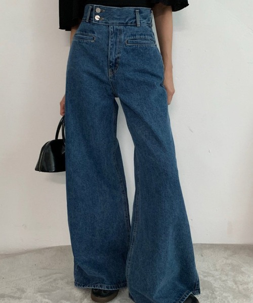 脚長×美シルエット。主役級のワイドフレアデニム。■デザインハイウエスト仕様でスタイルアップ効果抜群のワイドフレアデニムパンツ。ウエストにはアクセントになるボタンデザインを施し、トップスインも映える仕上がりに。裾に向かって広がるフレアラインが脚をすらりと見せ、女性らしいメリハリのあるシルエットを演出します。3サイズ展開で、自分にぴったりの一本が見つかります。■素材しっかりとしたデニムの風合いにストレッチ性をプラス。動きやすく、長時間の着用でも快適な履き心地。程よい厚みでオールシーズン活躍します。■スタイリングトップスをインしてウエストデザインを見せる着こなしがおすすめ。ショート丈のニットやブラウスと合わせて、バランスよくスタイルアップ。スニーカーでカジュアルに、ショートブーツでレディライクにも◎。-----------------------------透け感:なし伸縮性:なし裏地:なし------------------------------------------------------------【スタッフが着用しました!】身長:158cm普段着用サイズ:S~Mサイズ今回着用サイズ:Mサイズ■着用感ハイウエストでしっかりとウエストをホールドし、安心感のある履き心地。ワイドフレアのラインが足のラインを拾わず、体型カバーにも効果的。3サイズ展開で、ジャストでもゆったりめでも好みに合わせて選べます。------------------------------------------------【お買い物をよりお楽しみいただく為に】▼お気に入り登録サイズ・カラーを指定して、♡マークをクリック![セール通知・ラスト1点の通知・完売アイテムの再入荷通知]を受け取ることができます。▼ブランドのお気に入り登録新商品や再入荷、タイムセールやクーポン等いち早くブランドのお得な情報を受け取ることができます。------------------------------------------------※取り扱い上のご注意染色の特性上、発汗や摩擦により色落ちしたり他のものに色移りすることがありますのでご注意ください。韓国 オフィスカジュアルガーリー大人カジュアル韓国ファッション秋服冬服