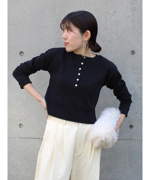 ヘンリーネックがラフでトレンド感のあるロングスリーブTee ■デザイン シェルボタンを沢山付けてポイントをプラス。 ショート丈で、アウターのインナーにも使いやすい丈感でデイリーにきまわしが楽しめるベーシックカラーの展開です。 ■生地感 コットンテレコ生地を使用。 ■サイズ感 程よくフィットするサイズ感。 ■スタイリング カジュアルにデニムとのスタイリングがUngridらしい印象です。 ボタンを少し開けてラフに着るスタイリングもおすすめ。 ・・・・・・・・・・・・・・・・・・・・・・ 透け感:なし 裏地:なし 伸縮性:なし 光沢感:なし 生地の厚さ:普通 ・・・・・・・・・・・・・・・・・・・・・・ ※商品画像はサンプルのため、色味やサイズ、素材の混率等の仕様に 変更がある場合がございます。予めご了承ください。 ※生地寄り画像を正規の商品の色味に近づけております。 ■商品のお気に入り登録 再入荷通知やラスト1点、お得なプライスダウンの情報も受け取ることができます。 ぜひご登録ください◎