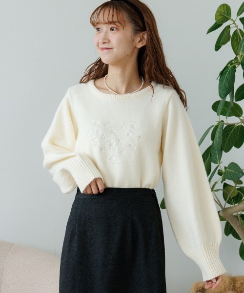 ■デザインハート型のブーケのような刺繍がキュートなニット♡オリジナルのお花刺繍を施した特別感たっぷりな一枚♪大小のお花を散りばめて動きを出し、重い印象にならないようにデザインしました。太めの袖・裾リブでフェミニンさもプラス♡コンパクトな丈感なので、様々なシルエットのボトムスと相性◎着回し力抜群なアイテムです。ずっと着ていたくなる、もちっと柔らかな手触り♪デイリー使いやデートにぴったりです。■おすすめコーディネートfrill mini skirtやfeminine half pantsのようなミニボトムスと合わせたフェミニンコーデが◎カジュアル派さんはsunny buggy pants3との合わせがおすすめです。classic frill blouseやclassic pleats blouseと重ねて、袖口や裾からフリルを出した着こなしもお楽しみください♡■flower/フラワー「love&joy」をコンセプトに、商品に愛を込め、お客様に楽しんでいただけるような、ナチュラルでガーリーなアイテムを提案していきます。【お買い物を上手にお楽しみいただくためのPOINT2つ】◎ 購入ボタン横の ♡ (ハートマーク)をクリック! 完売カラーの再入荷通知、残り1点の通知、セールの通知を受け取れます。 (クリックまたはタップで商品のお気に入り登録♪)◎ ショップのトップページにある ♡ (ハートマーク)「お気に入りショップに追加」をクリック! 新商品や再入荷等、いち早くブランドのお得な情報を受け取れます。 (ブランドのお気に入り登録♪)