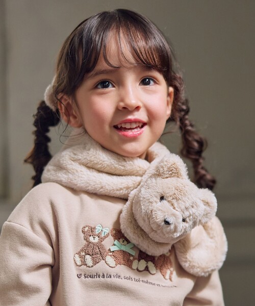 アニマルたちと一緒におでかけできる♪ふわふわマフラーふわふわマフラー POINT ●巻いて差し込むだけでOK? ●カジュアルスタイルにも◎ ●アニマルフェイスがポイントになる ■デザイン ぬいぐるみ風のアニマルフェイス付きマフラー。 フェイクファー素材でふんわりあたたかく、首元にぐるっと巻いて差し込むだけの簡単装着。 甘さ控えめのデザインだから、トレーナーやパンツスタイルなどのカジュアルなコーディネートにも自然にマッチします。 首元にはカラーによってネコ・ウサギ・クマの存在感のあるアニマルフェイスマスコットがついていて、遊び心のあるアクセントに! 寒い季節のコーディネートにぴったりのアイテムです。 【ANY KIDS/エニィ キッズ】 「もっと自由で、もっと実用的な、手の届く“ちょうどよさ”」 女の子のかわいくなりたいを叶える、今の気分にぴったりなガーリースタイルを提案します。 ※モデル着用画像はサンプルを使用している為、実際にお届けする商品と仕様、加工、サイズが若干異なる場合がございます。予めご了承ください。 ※掲載画像はご利用いただくPCやスマホの画面環境の都合上、実際の商品と色合いが異なって見える場合がございます。 ※ブランド名変更に伴い、旧ブランド名タグの商品が含まれる場合があります。ご了承ください。 ★《お気に入り登録》でお得な情報がいっぱい★ ・「商品のお気に入り登録」で再入荷通知や、セール通知も受け取ることができます。 ・「ブランドのお気に入り登録」で新商品や再入荷など、お得な情報を受け取ることができます! ANY KIDS/エニィキッズ/any FAM/any FAM KIDS/エニィファム/エニィファムキッズ/キッズ/秋冬/マフラー/うさぎ/くま/ねこ/かわいい/人気/デイリー/女の子/ガール/お出かけ 洗濯表示 【本体のみ】30℃まで弱洗濯可 塩素系漂白不可 タンブル乾燥不可 日陰つり干し乾燥 アイロン不可 ドライクリーニング不可 弱いウェットクリーニング可