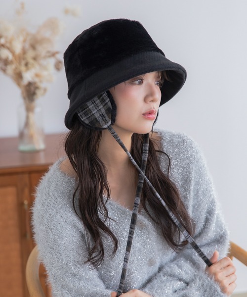 ふんわりファーのトップと、チェック柄の耳当てが可愛らしい冬のあったかハット。やさしい色合いとナチュラルな素材感で、季節の装いにぴったりのデザインです。耳当てはリボンを結んでも、垂らしてもOK。気分やコーデに合わせてアレンジを楽しめます。軽くてあたたかく、内側にはサイズ調整機能付きでフィット感も抜群。深めにも浅くもかぶれます。カジュアルにもフェミニンにも合わせやすい、冬のおでかけにおすすめのアイテムです!洗濯可能優しく手洗いで洗ってください。*裏生地部分に機能素材を使用しています*静電気軽減ぱちぱちがおきにくい!※完全に発生を防止するものではありません。抗菌防臭菌の繁殖を抑制し不快な臭いをケアしてくれます吸水速乾ベタつきにくく肌触り爽やか[本体・耳内部分]ポリエステル100%[つば部分]ポリエステル62%レーヨン20%アクリル18%[別生地部分]ポリエステル57%アクリル23%毛14%ナイロン4%その他2%