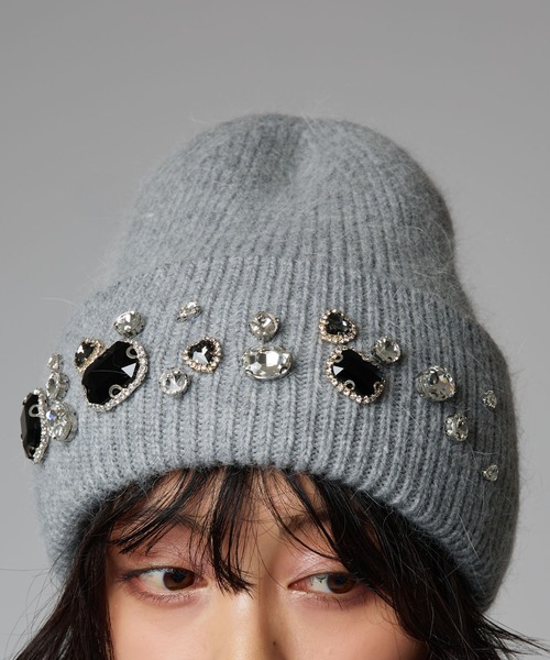 ビジュービーニー 【ポイント】 柔らかなニット素材に、大ぶりのビジューを贅沢にあしらったデザインが印象的なビーニー。シンプルなフォルムに華やかな輝きをプラスし、被るだけで顔周りをぱっと明るく見せてくれます。デイリーにも特別な日にも映える、主役級のビーニーです。 【デザイン・シルエット】 丸みのあるフォルムがほどよくボリュームを生み、被るだけでこなれた印象のビーニー。柔らかなリブ編みが頭に優しくフィットし、自然な立体感を演出します。フロントに散りばめられたビジューが、シンプルなシルエットに上品な輝きを添えるデザイン。カジュアルな中にもラグジュアリーなムードが漂い、スタイリングのアクセントとして存在感を放ちます。無駄のない形だからこそ、装飾のきらめきがより引き立つ一枚。さっと被るだけで洗練された印象を叶え、デイリーから特別なシーンまで活躍するアイテムです。 【おすすめのスタイリング】 カジュアルなデニムスタイルに合わせて抜け感を出すのはもちろん、ロングコートやジャケットに合わせれば、上品さと遊び心を両立したスタイリングに。ワンピースやスカートと合わせても甘くなりすぎず、程よくモードな印象をプラス。シンプルな着こなしに合わせるだけで、コーデ全体を華やかに仕上げてくれるアイテムです。 【素材】 ふんわりとしたアンゴラ混の素材が、やさしく包み込むような被り心地。軽やかで柔らかく、チクチク感のない滑らかな肌触りが魅力です。ナイロンを混ぜることで程よい伸びと強度をプラスし、形を綺麗にキープ。長時間の着用でも快適に過ごせる、心地よい風合いです。 ※ご覧のモニター環境や撮影環境により実の商品と多少色味が異なって見える場合がございます、ご理解の程を宜しくお願い致します。 ▼商品のお気に入り登録をおススメ致します☆サイズやカラー横のハートマークをクリック! 完売カラーの再入荷や、ラスト1点の通知、セールの際の通知を受ける事ができます。 お気に入り登録も宜しくお願い致します♪