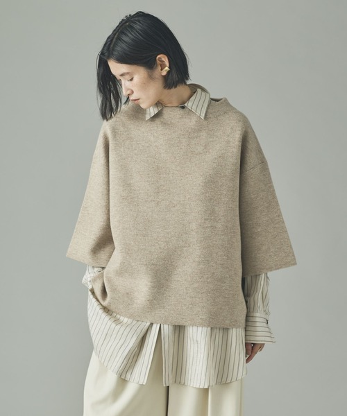 2025 AUTUMN&WINTER COLLECTION ボックス型のシルエットが新鮮なニットトップス ■デザイン ・しっかりと編まれた張り感のあるボックス型のシルエット。 ・体のラインを拾わないゆとりのあるデザイン。 ・インナーにシアーカットソー等を合わせたレイヤードスタイルがおすすめ。 ・ボトムスを選ばないサイジングで幅広いスタイリングを楽しめる一枚。 ■素材 / お手入れ方法 ・表側は膨らみのあるウール、裏は張りを持たせるポリエステルの糸を使用。 ・丈夫でヨレにくい接結編みが特徴。 【Curensology(カレンソロジー)】 旅とは、非日常と日常の間を行ったり来たりしながら、その土地の空気や風景、文化、歴史、そして出会いを、五感のすべてを使って受け止めること。「カレンソロジー(Curensology)」は、そんな旅をイメージした、知的でエレガントな女性のためのワードローブとテキスタイルを提案。バカンスや出張に持っていきたい機能的なアイテムをはじめ、日々の暮らしをアップデートする新しいデザイン、着心地の良いエッセンシャルなものなどを展開しています。 ※サンプルにて撮影をしておりますので、実際の商品とは仕様や加工・サイズ等が若干異なる場合がございます。 ※屋外の光や照明の当たり具合で、実物と色味が異なって見える場合がございます。詳細画像の色味をご確認ください。 なお、商品の色や質感を出来るだけ忠実に再現するよう心掛けておりますが、パソコンなどの環境により、実物と若干異なる場合がございます。 ▼商品のお気に入り登録をおすすめします▼ ♡をクリック!完売カラーの再入荷や、ラスト1点の通知、セールの際の通知を受ける事ができます。ブランドのお気に入り登録もご一緒にお願い致します。