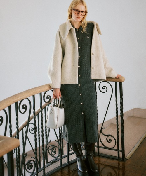 【2025 Autumn/Winter】【25AW】 <POINT> ・女性らしさの詰まったIラインシルエット。 ・ポロ襟とケーブル編みで今年らしいデザイン。 ・バストから下の前立ては開かないようなデザインなので、1枚で着ても安心です。 【デザイン・シルエット】 Iラインシルエットの女性らしさの詰まったポロ襟のケーブルニットワンピース。 【素材】 ほどよい厚さで肌触りの良いニット素材。 【カラー】 チャコール、ダークブラウンのワンピースで着やすいカラー2色展開。 【おすすめのスタイリング】 1枚でさらっと着たり、パンツとレイヤードしてスタイリングするなど雰囲気を変えてスタイリングできるアイテムです。 冬に向かってボリュームのあるアウターと合わせてもバランスがとりやすい様にアイラインのシルエットで作っているので、これからのシーズンも着やすいシルエットです。