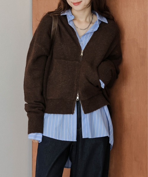 気分に合わせて印象の変化を楽しめる Wジップニットパーカー ふんわりとしたニット素材が暖かい着心地を叶えるアイテム。 上下に開閉できるダブルジップ仕様で様々な着回しが可能◎ シンプルで洗練されたデザインが、 ボトムスを選ばず、 こなれた印象に。 程よい厚みのニット生地で、レイヤードなどもしやすいのもポイントです。 Point 01 洗練されたデザイン シンプルながらもこだわりの ディテールが詰まったデザイン。 トレンドのWシップデザインを採用し、 お好みの抜け感を表現でき、 こなれた印象に。 機能性に優れたフロントポケット 付きもポイントです◎ Point 02 レイヤードも◎ 厚すぎず、薄すぎない程よい厚みの ニット生地で、 着ぶくれせず、 レイヤードなどもしやすい◎ 羽織りとしてはもちろん、 トップスとして、 ジャケット合わせ なども大人カジュアルで おすすめです。 【25AW】 ■Fabric 柔らかくチクチク感の少ない 肌触りの良いアクリルニット 厚すぎず、薄すぎない程よい厚みの生地感。 --------------------- 透け感:なし 裏地:なし 厚さ:薄手 伸縮性:あり --------------------- ▼《お気に入り登録》でお得な情報がいっぱい▼ ・「商品のお気に入り登録」で再入荷通知や、ラストの通知、セール通知も受け取ることができます。 ・「ブランドのお気に入り登録」で新商品や再入荷など、お得な情報を受け取ることができます!