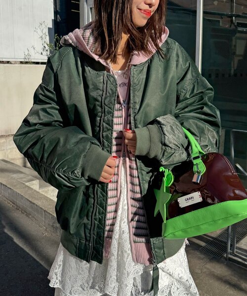 ヴィンテージライクなMA-1▼ポイント製品染めならではのムラ感と色味が魅力のオーバーダイMA-1。ほどよくルーズなシルエットで、羽織るだけで抜け感のあるスタイルに仕上がります。くったりとした風合いがヴィンテージライクな印象をプラスし、デイリーアウターとして活躍する一枚です。▼スタイリングレースやシャギーニットなど異素材を合わせて、こなれ感たっぷりのミックススタイルに。デニムやカーゴパンツと合わせて、ミリタリームードを楽しむのもおすすめです。---------------------------------------------------透け感:なし伸縮性:あり裏地:あり光沢:なし---------------------------------------------------家庭洗濯:40℃限度/手洗い可タンブル乾燥:不可アイロン:低温110℃までクリーニング:石油系溶剤による弱いドライクリーニング可、非常に弱い処理によるウェットクリーニング可---------------------------------------------------※着用、お取り扱いの際は、商品についている品質表示とアテンションタグを必ずご確認下さい。※画像の商品はサンプルです。実際の商品と仕様、加工、サイズが若干異なる場合がございます。※可能な限り実物に近いカラーにて掲載していますが、撮影環境やモニター環境などにより製品と画像のカラーがやや異なって見える場合もございます。予めご了承ください。【お買いものをよりお楽しみいただく為に!!】▼商品のお気に入り登録(ハートマークをクリック)お気に入りアイテムの完売カラーの再入荷通知や、ラスト1点の通知、セールの通知も受け取ることができます。▼ブランドのお気に入り登録新商品や再入荷、クーポン配布などのお得な情報を受け取ることができます。
