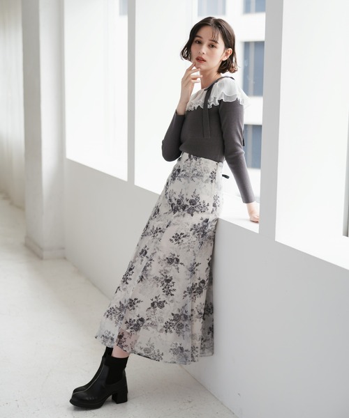 上品な花柄をシアー素材にプリントしたフレアスカート。歩くたびに揺れる裾が女性らしさを引き立てます。暑い時期はTシャツやブラウスで軽やかに、寒くなってきたらニットと合わせて、シーズンレスで楽しめる着回し力の高いアイテムです。■fabric透け感[有り]裏地[無し]伸縮性[無し]生地の厚さ[薄手]ウエストゴム[有り]ファスナー[有り]ポケット[無し]■design軽やかで肌さわりの良いシアー生地に、オリジナルの花柄をプリントしたセミマーメイドスカート。取り入れるだけで、華やかな上品さを演出します。後ろはゴムで締め付け感のない仕様にし、サテン生地のバックリボンでアクセントを効かせました。シャギー系のニットや、ミドルゲージのアイテムとの合わせがオススメです。★《お気に入り登録》でお得な情報をGET★・「商品のお気に入り登録」で再入荷通知やラスト1の通知、セールやクーポンの通知も受け取ることができます!→ハートマークをクリック・「ブランドのお気に入り登録」で新商品や再入荷など、お得な情報を受け取ることができます!