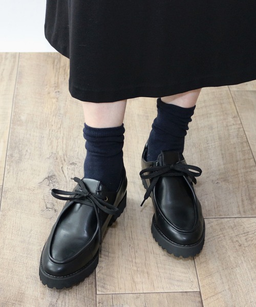 【Fin 2025 Autumn collection】 ■程よくカジュアルな足元が叶います■ 暖かみのあるスエード素材がシーズンムードを盛り上げるFin(フィン)の厚底チロリアンシューズが登場しました。甲を縁取る厚手のモカシン縫いに、太めのシューレースが可愛いチロリアンシューズは今季大注目の厚底ソールを組み合わせることで、アウトドアイメージが強いですが、タウンユースに適したデザインに。ボリューム感のある足元が叶い一気に今っぽさがプラスされます。 ■柔らかい履き心地が魅力■ 中敷きの下には低反発クッションをセットしているので、長時間の歩行やレジャーにも安心して履けそうです。程よく丸みを帯びたフォルムは甲深で足をすっぽり包み込んでくれるので窮屈感もなさそう。デニムやワイドパンツにはもちろんですが、スカートやワンピースで外しコーデも◎。カラーによって印象が変わるのでお気に入りの一足をチョイスして。 ■低反発スポンジ入り(低反発スポンジを使用することにより歩行時の衝撃をやわらげます。) *低反発スポンジ・・・圧力を分散し、包み込む様なクッション感が特徴です。 スタッフによるサイズ感 ■普段のサイズ:24.0cm 足幅E(普通) ■着用サイズ:24.0cm ■感想:普段は24.0cmを履いていますが、素足やストッキング合わせでちょうど良いサイズ感です。靴紐で足幅や甲部分の調節ができるため、ソックスを合わせても窮屈になることはありませんでした。柔らかい素材を使用しているので足当たりが良く、履いていくうちにより足に馴染んでいくと思います。見た目にややボリュームがありますが、軽量なのでたくさん歩く日にもおすすめです。チロリアンシューズに厚底ソールを組み合わせたトレンド感のある1足です。 ※上記は弊社スタッフの個人的な感想になります。お客様により感想が異なりますため、あくまで参考としてご覧下さい。 <サイズスペック> 22.5cm/アッパー幅:約13.3cm ソール幅:約8.8cm 重さ:約255g 23.0cm/アッパー幅:約13.5cm ソール幅:約8.9cm 重さ:約260g 23.5cm/アッパー幅:約13.7cm ソール幅:約9.0cm 重さ:約273g 24.0cm/アッパー幅:約13.9cm ソール幅:約9.1cm 重さ:約276g 24.5cm/アッパー幅:約14.1cm ソール幅:約9.2cm 重さ:約285g 25.0cm/アッパー幅:約14.3cm ソール幅:約9.3cm 重さ:約292g ・サイズスペックについてはFin独自の方法により採寸しております。 ・同一商品でも個体差が生じるため、採寸内容に若干の差が生じる場合がございます。