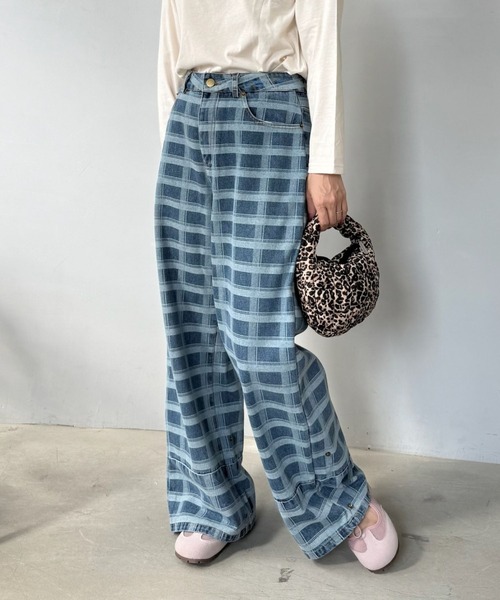 大きめのチェック柄が特徴的なデニムワイドパンツ。存在感のある柄がスタイリングにアクセントを加え、シンプルなトップスと合わせるだけで雰囲気のある着こなしが完成します。裾にはスナップボタンを配しており、ロールアップしてシルエットに変化をつけられるのもポイント。ストレートなワイドシルエットは脚のラインを拾わず、ハイウエスト仕様でスタイルアップ効果も期待できます。クロップドトップスやシャツインスタイルと合わせやすく、スニーカーでカジュアルに、ブーツやヒールでモードライクにと幅広く活躍。シーズンを問わず着回せる万能さも魅力です。デニムのカジュアルさとチェック柄の個性が融合した一本で、デイリーからお出かけまで幅広く対応でき、スタイリングに遊び心をプラスします。詳細補足仕様:裾スナップボタンあり(ロールアップできる伸縮性:なし透け感:なし光沢:なし裏地:なし厚さ:普通サイズ感:普通【SANSëLF】▼お気に入り登録をおすすめします▼♡をクリック!お得なセール情報や、人気完売商品の再入荷情報ラスト1点の通知など、耳寄りなお買い得情報をいち早く受ける事ができます。ブランド【SANSëLF】のお気に入り登録もご一緒にお願い致します。取扱注意事項※サイズは、測定方法と測定者によって多少の誤差がありますのでご了承下さいませ。また体型によって、サイズ感に個人差がございます。(平置き採寸)※商品によってはシワがつきやすく、畳みジワや折りジワなどが強く出る場合がございます。その際は加湿した風呂場に数時間干すか、スチームアイロンでのお手入れをお勧めしております。※生地の素材上、においが気になる場合がございます。その際は陰干しして頂くと、ほとんど感じにくくなります。※レース等の繊細な素材を使用している場合には、お取り扱いにご注意下さい。※デニムを使用した製品は、インディゴ染めをしています。汗や摩擦により移染しやすいので、白色、淡色の組み合わせや重ね着はお避け下さい。※ニット素材を使用した製品は、重みで伸びやすくなりますのでハンガーでの保管はお控えください。※お洗濯の際には、品質表示の指示に従ってください。必要であれば専門店にご相談ください。家庭でご洗濯できる商品に関しては、洗濯専用ネットをご使用の上、個別での洗濯をお勧めいたします。お色物は、色移りする可能性がございます。※着用画像は撮影状況や光によって、多少異なる場合がございますので、置き画像をご確認下さい。※2023年7月1日より、環境に配慮した取り組みの一環として、紙のアテンションタグを廃止しております。