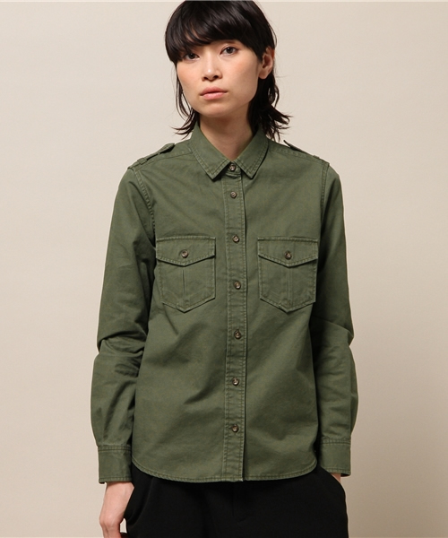 しっかりした素材感なので前を留めての着用はもちろん、軽い羽織としても着用していただけます。カーキは今シーズンも注目カラー。デニムシャツだけでなく、ミリタリーシャツもワードローブの中におすすめしたいアイテムです。