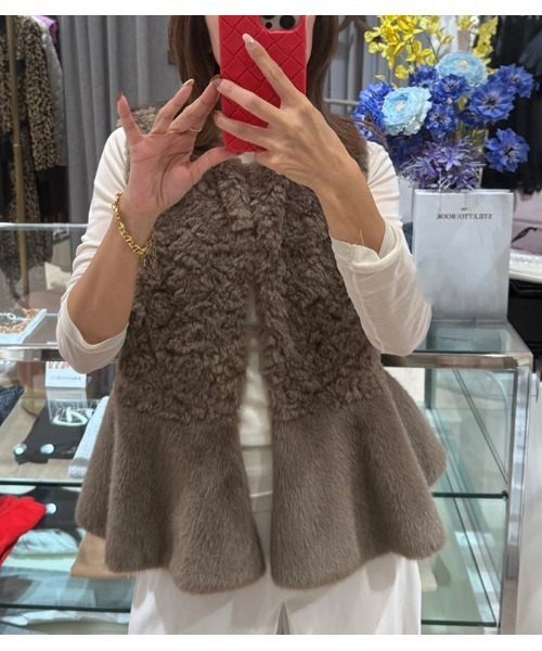 【Fellini/フェリーニ】テディベアのようなボアライクなファーと艶感のある滑らかな異なるファーを組み合わせて仕立てた、表情豊かなペプラムデザインのファーベスト。ボディ部分とペプラム部分で毛足の異なるフェイクファーを切り替えることで、立体感のあるシルエットを演出します。暖かみのある柔らかな肌触りと艶のあるエレガントな質感が、シーズンムードを高めながら上品な華やぎをプラス。ペプラムラインがウエスト位置を高く見せてくれるのでスタイルアップ効果も抜群。コンパクトな丈感で、ボトムスのシルエットを選ばずバランスよく着こなせるのも嬉しいポイント。羽織るだけでコーディネートに季節感と女性らしさを添えてくれる、秋冬の主役にふさわしい一着です。*+*+*+*+*+*+*+*+*+*+*+*★商品のお気に入り登録をおススメ致します★サイズやカラー横のハートマークをクリック!完売カラーの再入荷や、ラスト1点の通知、セールの際の通知を受ける事ができます。