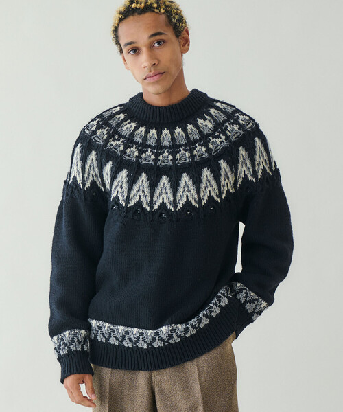 <デザイン>- ブランドを象徴するアイコニックピース- 独自性のあるノルディックパターン- ゆとりのあるサイズ感- クルーネック<素材>- 弾力性に優れた上質なフレンチメリノウール- 軽量で柔らかくなめらからな着心地- 技巧を凝らした複雑かつ立体的な編み組織※着用、お取り扱いの際は商品についておりますアテンションタグ、洗濯ネームを必ずご確認ください。※モデル撮影画像は、光の当たり具合やパソコンなどの閲覧環境によって、実際の色味と異なって見える場合がございます。商品の色味は商品単体で撮影した詳細画像をご参照ください。メーカー品番:13-254-017COOHEM | コーヘンブランド名は「交編 | こうへん)」に由来する造語。「交編」とは形状の異なる複数の素材を組み合わせて編み立て、新しい素材を産み出す技術を指し、「COOHEM」はこうして誕生したニットツイードと呼ばれる独自のテキスタイルを用い、まったく新しいトラディショナルウェアを表現している。すべての工程が一箇所で完結する希少なファクトリーから、日本のモノづくりカルチャーを世界に発信している。