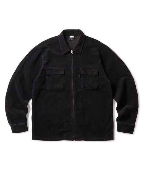 中肉のコットンコーデュロイを使用し、ウォッシュ加工を施したジップアップシャツ。ポケットにピスネーム。