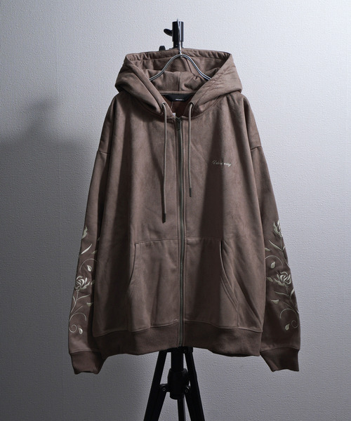 裏起毛カットスエード フラワー袖刺繍フルジップパーカーカットスエード素材に裏起毛を施した、柔らかく暖かな着心地のフルジップパーカー。袖には華やかなフラワーモチーフの刺繍をあしらい、ベーシックなアイテムに個性をプラスしました。フロントジップ仕様で羽織りやすく、季節の変わり目から真冬まで幅広く活躍。デイリー使いはもちろん、コーディネートの主役にもなるデザイン性の高い一着です。【お買い物をお楽しみいただく為に】▼商品のお気に入り登録完売カラーの再入荷通知や、ラスト1点の通知、セールの通知も受け取ることができます。▼ブランドのお気に入り登録新商品や再入荷等、いち早くブランドのお得な情報を受け取ることができます。