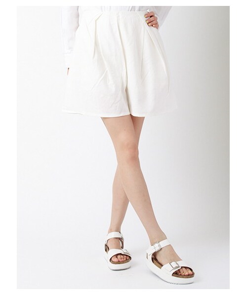 夏らしいシャリ感ある素材のハーフキュロットパンツ。タックが入りふんわりとしたキュートなシルエットを実現。丁度良いボリューム感は美脚効果も期待できそう!ウエストは後がゴム仕様、前はスッキリとしたデザインでトップスをインするのもオススメです。裏地付き。 -------------------------------- 【モデル身長:約169cm/バスト:約80cm/着用サイズ:Fサイズ】