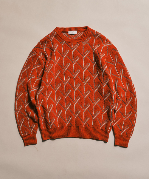 ”幾何学柄をモチーフにしたアイテム”立体感やふくらみ、しっかりとしたシルエット感のあるニットに仕上がっています。配色にこだわったデザインもポイント。長いシーズン着用頂けるアイテムです。本体:手洗い可能