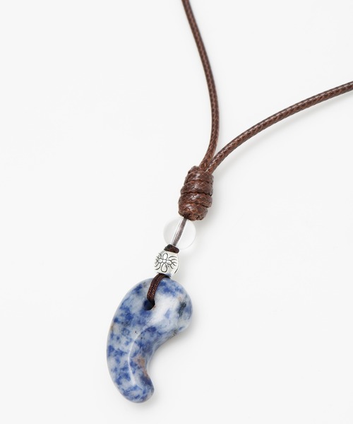 太陽と月が重なり合った形、原形は動物の牙・胎児といわれる勾玉のネックレス。 勾玉は魔除け、幸運を呼ぶお守りとされています。 老若男女問わず、お使いいただけます。 ●ブラウン:TIGER EYE ●ターコイズブルー:TURQUOISE ●ブルー:BLUE SPOT JASPER ※こちらの商品は1点1点職人による手作りとなります。また天然石を使用しております為、形や色合いなど若干個体差がございます。あらかじめご了承ください。 ※商品を長くご愛用いただくために、入浴時など水に触れる際は必ず外してください。 Amina Collection Co.,LTD.