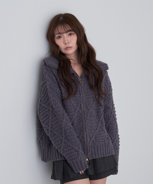 \一癖ある柄編みがオシャレ/羽織りとしても使えるニットが新登場ー 商品コメント ー・しっかりした生地なのでインナー次第で寒い日にも着ていただけます。・腰くらいの丈感で身長問わず着やすいアイテム◎・ジップの開け具合で首元が調整できるので好みのシルエットが作れます。ー スタイリングポイント ー・デニムを合わせたキレイめカジュアルスタイル・ミニ丈を合わせたフェミニンスタイルも◎ー 洗濯表示・お取り扱いについて ー洗濯:手洗い可(40度限度)タンブル乾燥:不可アイロン:110度まで※着用・お取り扱いの際は商品についている品質表示とアテンションタグを必ずご確認ください。【製品のご注意】・色落ちすることがありますので、他のものと分けて洗濯してください。・洗濯の際多少縮むことがあります。・汗や雨等で濡れた時や摩擦により。他の衣類や持ち物等(特に白)に色移りする可能性がございますので、十分ご注意ください。・合成皮革は時間の経過と共に劣化する特性があります。------------------------------◆お気に入り登録について◆気になるアイテムは♡を押して、お気に入り登録がおすすめです。お気に入り登録をするとこんなメリットが!⇒商品のお気に入り登録商品の再入荷や、ラスト1点通知、お得なセール情報など特別な通知を受け取ることができます。⇒ブランドのお気に入り登録新商品や再入荷、クーポン配布などお得なブランドの情報をいち早くお知らせいたします。気になるアイテムを一覧で見ることができます。お買い物リストとしてぜひご利用下さい。------------------------------〈 RAY CASSIN / レイカズン 〉Chicoの姉妹ブランドのRAY CASSINモードとストリートのファッションの中に感じる洗練さ。RAY CASSINは常に新しいものを求める方に向けたトレンドと自分らしさを表現できるブランドです。〈 Attention 〉〇商品について・商品画像はサンプル品を使用しているため、実際の商品と仕様、加工、サイズが若干異なる場合がございます。・商品の色味は、撮影場所や光のあたり具合などにより色味が違って見える場合がございます。 また、お客様のお使いのPCのモニター環境などにより色味が違って見える場合がございます。予めご了承ください。・キャンペーンやフェアにより価格が変動する場合がございます。・セールは予告なく終了させていただく場合もございます。〇返品・キャンセルについて・着用、洗濯後の返品、交換は致しかねます。・商品到着後、着用前に商品の状態を確認して頂きますようお願い致します。