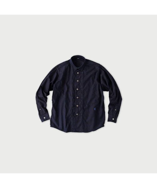 時を経ても色褪せないスタンダードアイテムたちを倉庫の中で大発見!当時のままの価格でONLINE STORE限定販売です。「大切なもの」に新しい仲間が登場。ミリタリーのジャケットをお手本に海のシャツを創りました。特徴的なボタンの留め具はロープワークの基本「エイトノット」に見立てました。軽く羽織る事も出来て、インナーにもなって、一年を通して着られるのはシャツだからこそ。ボタンを一番上まで留めれば、ジャケットのようにも着られます。新たに登場したタツノオトシゴ刺繍は「海の左馬」海を感じるアイテムの証です。