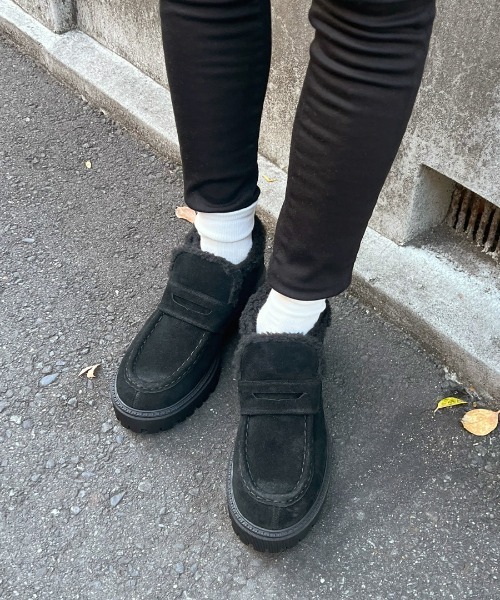 Dhyana.ディアナドット素材:牛革 ボア / ポリエステル100% 中敷き / 抗菌・防臭効果のある合成皮革ソール:前3.0 後4.5cmMADE IN JAPAN足元にボリュームのある、バランスのいいコーディネートに仕上げてくれるハイカットローファー。主張の控えめな同色のインナーボアが、さり気ない抜け感に。Dhyana.のシューズには欠かせない「低反発ウレタンスポンジ」を中敷きの下かかと部分に敷いています。足当たりがよく、かかとにかかる圧力を分散してくれます。痛くなりにくい・履きやすいシューズの秘密です。STAFF COMMENT STAFF OG足長 22.0cm│幅 E│甲 高め│ギリシャ型普段のサイズ 22.5cm↓選ぶサイズ 22.5cm足は入れにくいですが、大きさはぴったりです。23.5cmにすると足は入れやすいですが、かかとがだいぶ余ります。STAFF AZ足長 22.5cm│幅 D│甲 標準│ギリシャ型普段のサイズ 22.5-23.0cm↓選ぶサイズ 23.5cm22.5cmだと足が入らなかったので、少し大きいですが23.5cmにします。厚手のソックスならぴったりめに履けそうです。STAFF YM足長 23.0-23.5cm│幅 E│甲 標準│エジプト型普段のサイズ 23.5cm↓選ぶサイズ 23.5cm少し足は入れにくいですが、モカの下にゴムがあるので簡単に履けます。内側のボアがやわらかく暖かいです。STAFF U足長 23.5-24.0cm│幅 E│甲 標準│ギリシャ型普段のサイズ 23.5-24.0cm↓選ぶサイズ 24.5cm少し足幅があるので、23.5cmだと履き口でつまってしまいます。24.5cmでも、ソックス着用で大きく感じることなく履けそうです。内側のボアが少し見えているのがかわいい。サイズガイド22.5cm:底幅8.023.5cm:底幅8.524.5cm:底幅8.9・「つま先の中央」と「親指の付け根あたりで最も出ている部分」が垂直に交わるラインを計測しています。・ご自身の足の幅ではなく、お手持ちのシューズの底幅と比較してご検討ください。