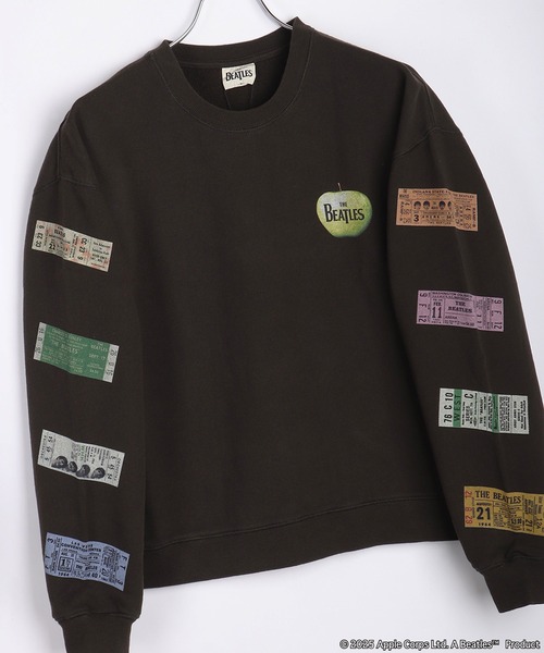ツアーチケットを纏う、ビートルズファン必携のヴィンテージスウェット■Design1964年のアメリカツアーをモチーフにした、The Beatles公式ライセンスのスウェット。両袖には当時のライブチケットデザインをインクジェットプリントで表現し、フロントにはおなじみのリンゴロゴを配置。バックにはツアー日程を大胆にプリントした、ファン心をくすぐるデザインです。古着のような風合いに仕上げたヴィンテージライクな一枚で、男女問わずユニセックスに着用可能。■Detail裏毛(約320g)の柔らかい裏起毛スウェット生地を使用。着込むほどに馴染むONE WASH加工を施し、洗いざらしのナチュラルな風合いを楽しめます。ドロップショルダー気味のリラックスシルエットで、トレンドの古着MIXやストリートスタイルにも相性◎。■Point・The Beatles公式ライセンス商品・両袖にツアーチケット柄のインクジェットプリント・ヴィンテージ風プリント加工・男女兼用(ユニセックス)デザイン・裏毛でロングシーズン使える快適な着心地【The Beatles(ビートルズ)】1960年代、世界を席巻した伝説のロックバンド。John Lennon(ジョン・レノン)Paul McCartney(ポール・マッカートニー)George Harrison(ジョージ・ハリスン)Ringo Starr(リンゴ・スター)の4人が生み出した音楽とスタイルは、今なお多くの人々を魅了しています。★商品をお気に入り登録する★お気に入り登録しておくと、完売商品の再入荷通知を受け取れます。さらに、ラスト1点・セール時にも通知が来るから、買い逃すことがありません!★ブランドをお気に入り登録する★新入荷・再入荷など、WESTSEAでのお得なブランド情報をいち早くお知らせ。