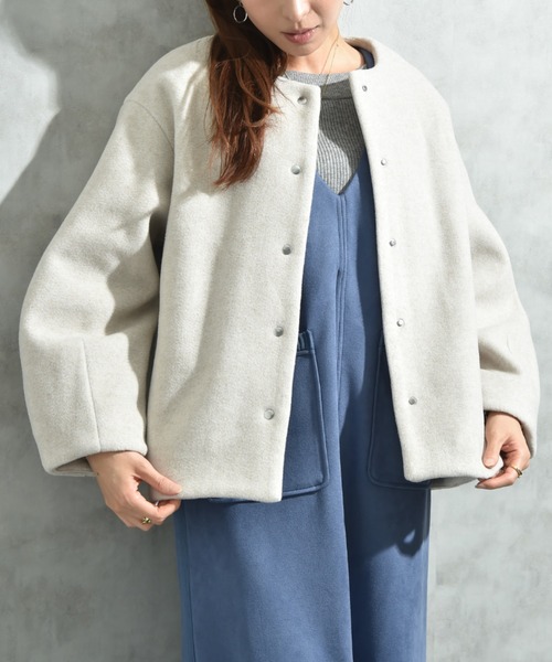 シンプルなデザインながらこだわりの詰まったノーカラーショートコートデザインはシンプルなショートコート。素材の表面を起毛加工し柔らかさと暖かな表情が魅力の素材です。ややドロップしたショルダーやさりげないコクーンシルエット、こなれ感のあるラウンドスリーブなど、細部にこだわりました。フロントはドットボタンを使用し程よいカジュアルさをプラスしました。羽織るだけでこなれた雰囲気にアップデートしてくれるお勧めなショートコート。女性らしいベージュ、品のあるグレーなど優しいニュアンスカラーでスタイリングし易さも抜群です。シンプルなデザインだからこそ長く幅広いスタイルで活躍できる、こだわりの詰まった自信作です!【取り扱い】ご自宅でイージーケア(手洗い)ができます。INTERPLANET/actuel(インタープラネット/アクチュエル)・conceptいつだって私らしく、私自身のスタイルが決まる。。。時代や年齢に媚びない『らしさ』を纏って生きる女性へ。旬なベーシックと抜け感のあるカジュアルをMIX。そんな大人カジュアルコーデを提案します。・お気に入りの登録についてショップ、ブランドのお気に入り登録でクーポンやタイムセールの通知などお得な情報を受け取ることができます♪また、気になるアイテムのお気に入り登録でセールや再入荷の通知など受け取ることができます。