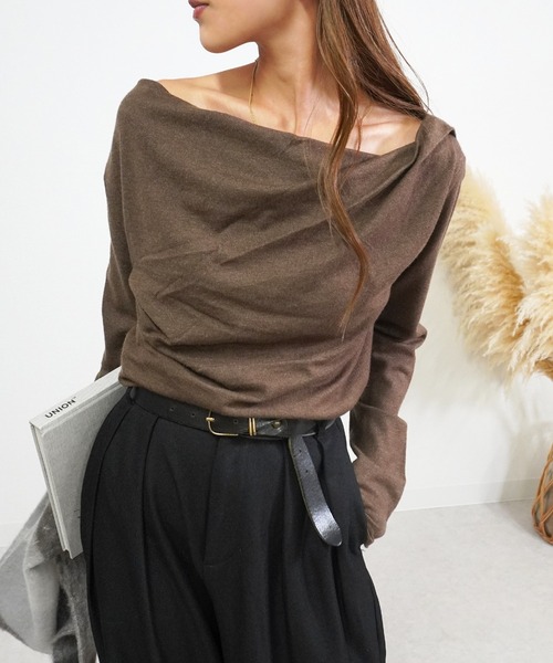 ■デザイン上品な抜け感を演出するオフショルダー風ドレープニット。デコルテを美しく見せる緩やかなネックラインと、身体のラインを拾いすぎない絶妙なシルエットが特徴です。柔らかな肌触りのニット素材で仕立てられ、さらりとした落ち感が女性らしい印象を引き立てます。シンプルながらも計算された drape(ドレープ)の入り方が、1枚でスタイリングを完成させてくれる主役トップスです。■スタイリングハイウエストのタックパンツやロングスカートにインして、上品な大人のスタイルに。肩を少しだけ落として抜け感を出す着こなしもおすすめです。アクセサリーは華奢なネックレスや小ぶりのピアスを合わせることで、女性らしさがより際立ちます。アウターにはジャケットやチェスターコートを合わせて、シーンを選ばず活躍する一枚。オフィスカジュアルからディナーシーンまで幅広く着回せる万能ニットです。※照明の関係により、実際よりも色味が異なって見える場合があります。またパソコン・スマートフォンなどの使用端末の環境により、若干製品と画像のカラーが異なる場合もございます。※商品の色味は、商品アップ画像をご参照ください。gossara(ゴサラ)″今欲しい″ ″今着たい″をコンセプトに可愛いと思うものセレクトし、simpleでnaturalな可愛いitemが並びます◎大人カジュアルをメインに流行を取り入れ、レイヤードや色使いでワンランクupした、トータルコーディネートをご提案◎【気になる商品はお気に入り登録をおすすめ】■商品のお気に入り登録再入荷通知、セールなどの通知を受け取ることができます。■ブランドのお気に入り登録新商品や再入荷など、ブランドのお得情報をいち早く受け取ることができます。