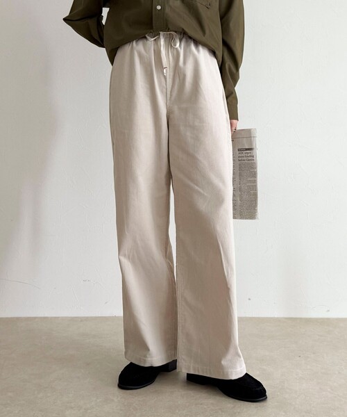 ◇GEVACO◇ 【2025 AW】 季節感たっぷり、こなれた表情のコーデュロイパンツ ●point ・シーズンムード高まるコーデュロイ素材のイージーパンツ ・ゆったりとしたワイドシルエットで、リラックス感とトレンド感を両立 ・腰回りから裾にかけてのストレートシルエットが脚長効果を叶えてくれます ・後ろポケットのGEVACO定番の三角ワッペンがワンポイントに! ・ウエストはオールゴム仕様でストレスフリー◎ ・カジュアルなTシャツからきれいめニットまで、幅広いスタイリングとマッチします ・デイリーからお出かけまで活躍する秋冬のマストアイテムです 【GEVACO/ゲバコ】 1960年代にベルギーにて創業した老舗ワークウエアメーカー。 馬がオーバーオールを着た可愛いブランドアイコンと、馬に引っ張られても破けないワークウェアを製造するメーカーとして有名になりました。創業当初はその丈夫さを買われ、ベルギー軍用の軍服として採用された実績があります。本国では1990年代にブランドは消滅しました。2021年、当時のブランドとの繋がりはありませんが、日本にて過去のデザイン・ディティールを参照し、現代風にアレンジした新たな“GEVACO"としてスタートしました。(商願2020-44488) 透け感:なし 裏地:なし 伸縮性:ウエストゴム入り 光沢感:なし 洗濯:手洗い可 ◇商品のお気に入り登録◇ 気になる商品は、お気に入り登録がオススメです! クーポン情報、入荷情報が、通知されるようになります。 ※お手入れの際は、商品についている品質表示タグの取扱い表示をご確認ください。 ●お取扱い上のご注意● *商品を長くご愛用していただきたいため、アテンションタグがある場合は必ずご確認の上、着用又はお取り扱い下さい。 *画像の商品はサンプルとなりますので実際の商品と仕様(主にファスナー・釦等の付属品)、加工、サイズが若干異なる場合がございます。 *店頭及び屋外での撮影画像は、光の当たり具合で色味が違って見える場合があります。商品の色味は、スタジオ撮影の画像をご参照下さい。 *商品画像に関しては出来る限り忠実に表示出来るよう努めておりますが、お客様がご利用のモニターの設定及び特性により、実際の商品と比較し色味に若干の誤差が生じる場合があります。 *製品洗い加工の商品は、多少の歪み、シワなどが見られたり、風合いやサイズ等が1枚1枚異なります。汗や雨等で濡れた時や、摩擦により色落ちし、他の衣料を汚すことがありますので(特に濃色のもの)ご注意ください。 ※サンプルでの採寸のため、サイズ表はあくまで目安となります。予めご了承ください。