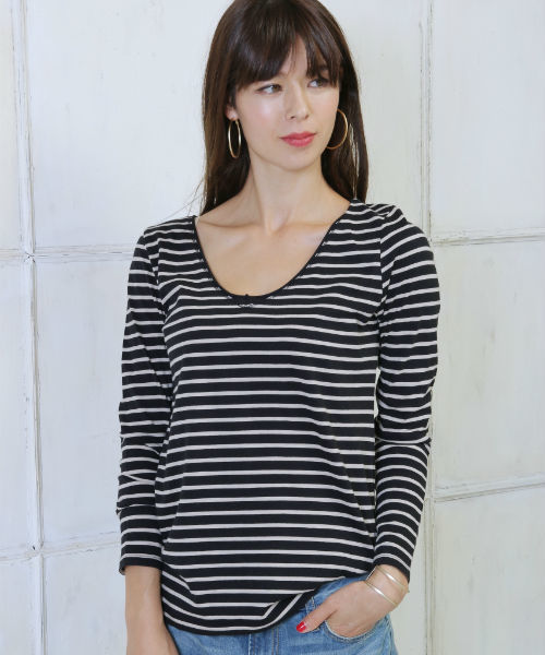 タンブラー加工の天竺素材でソフトな風合いにこだわった長袖プルオーバーです。カットオフ始末でラフ感を加えたVネックが、シンプル一辺倒では終わらないこなれ感を演出するポイントに。1枚着からレイヤードコーデまで投入できるので、幅広い着回しが楽しめます。