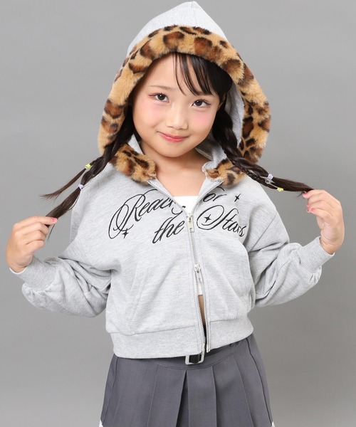 シーズンムードを高める、ヒョウ柄ファー付きフーディーパーカー。 ●一枚でコーデの主役になる、トレンド感たっぷりのデザイン。 ●ファーの存在感がありながらも、コンパクトなシルエットでバランスよく着こなせます。 ●羽織るだけで可愛らしさと個性が際立つ、秋冬のおしゃれアイテムです。 ♦detail ふわふわのヒョウ柄ファーをフード部分にあしらい、シーズンライクなアクセントをプラス。 身頃はやわらかな素材で、軽やかで快適な着心地に仕上げました。 前開きのジップ仕様で着脱もスムーズ。 ロゴが胸元にほどよい華やかさを添え、カジュアルにもガーリーにも合わせやすい万能なデザインです。 ♦styling 〇ガーリーカジュアル→プリーツスカート×ロングブーツでトレンド感アップ 〇ストリート→デニム×キャップで元気な印象に 〇韓国カジュアル→ミニボトム×厚底スニーカーでバランスよく ♦コーデにオススメ ハート刺繍ルーズソックス(429-3514) ベルト付 フリル プリーツ スカート【ジュニアお揃い】(421-3481) ----------- 伸縮性・・・あり 透け感・・・なし 光沢感・・・なし 生地の厚さ・・・ふつう ポケット・・・あり 裏地・・・なし ----------- <サイズ> 110cm 120cm 130cm ※生地のデザイン上、実際の商品と画像とで柄の配置が異なる場合がございます。予めご了承ください。 ※商品のお取扱いに関しましては、商品に付属のアテンションカード、洗濯ネームをご覧ください。 ※モデル着用画像は光の当たり具合で色味が違って見える場合がございます。 ※商品の色味の目安は、商品単体の画像をご参照ください。 【お買いものをお楽しみいただく為に!】 ▼商品のお気に入り登録 完売カラーの再入荷通知や、ラスト1点の通知、セールの通知も受け取ることができます。 ▼ブランドのお気に入り登録 新商品や再入荷など、いち早くブランドのお得な情報を受け取ることができます。
