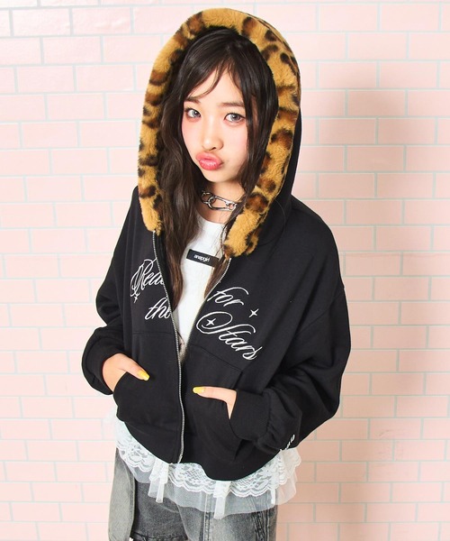 レオパードファーで季節を先取り。羽織るだけでおしゃれに決まるフーディーパーカー。●トレンドのレオパード柄をファーで取り入れた、存在感抜群のデザイン。●ファスナーを開けても閉めても、どこから見てもかわいいシルエットが魅力です。●程よいゆるさとコンパクトな丈感で、バランスよくスタイルアップを叶えます。♦detailフードの縁にふわふわのヒョウ柄ファーをあしらい、秋冬らしいアクセントをプラス。やわらかな裏毛素材で動きやすく、デイリーにもお出かけにも活躍します。胸元のロゴがさりげないポイントになり、甘すぎずクールすぎない絶妙なデザイン。ジップアップ仕様で着脱もスムーズ、重ね着次第でロングシーズン楽しめます。♦styling〇韓国カジュアル→プリーツスカート×ブーツでトレンド感アップ〇ストリート→デニム×キャップでラフにまとめる〇ガーリーミックス→レースキャミ×スウェットパンツで抜け感をプラス♦コーデにオススメフリルレース付 タンクトップ(913-7836)フレンジ フレア デニム パンツ【キッズお揃い】(912-7795)-----------伸縮性・・・あり透け感・・・なし光沢感・・・なし生地の厚さ・・・ふつうポケット・・・あり裏地・・・なし-----------<サイズ>XS(135cm~145cm)S(145cm~155cm)M(155cm~165cm)※生地のデザイン上、実際の商品と画像とで柄の配置が異なる場合がございます。予めご了承ください。※商品のお取扱いに関しましては、商品に付属のアテンションカード、洗濯ネームをご覧ください。※モデル着用画像は光の当たり具合で色味が違って見える場合がございます。※商品の色味の目安は、商品単体の画像をご参照ください。【お買いものをお楽しみいただく為に!】▼商品のお気に入り登録完売カラーの再入荷通知や、ラスト1点の通知、セールの通知も受け取ることができます。▼ブランドのお気に入り登録新商品や再入荷など、いち早くブランドのお得な情報を受け取ることができます。
