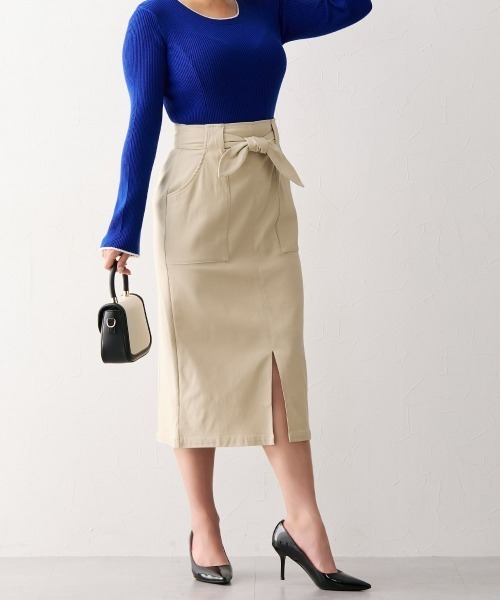 【グラマ-ヒップさん向け】待望の!グラマーヒップさん専用タイトスカート。試着会で「こんなにキレイに履けるなんて!」と、驚きの声が続出!タイトスカートは無理…なんて、もう言わせない。お客様の声から生まれた!グラマーヒップさんのための専用タイトスカートです。試作サンプルを試着会でお試しいただき、大好評をいただきました。また、その時にいただいたお客様のお声や社内のグラマーヒップスタッフの声を収集し、さらに改良を重ね、満を持して登場です!こんなお悩みありませんか?ウエストに合わせると、ヒップがピタピタ過ぎる…。ヒップに合わせると、ウエストがゆったりでシルエットがきれいにならない…。【グラマーヒップボトムとは?】ウエストは通常サイズ、ヒップにプラスサイズで美しいシルエット!・立体設計のオリジナル専用ヒップ設計しっかりヒップの高さを確保しているから、グラマーヒップさんもピチピチにならなず、快適な着心地です。・ウエストがぴったり、ヒップもぴったり!「タイトスカートは無理だと思ってた…」というお悩みを解決します!すっきりキレイに着こなしていただけます。・切替で縦ラインを演出縦ラインを演出する切替がはいっているから、すっきり細見え。・デザインポケット付フラットなポケットで、腰・太もも回りをすっきり見せるデザイン・取り外し可能リボン付リボンでウエストをしっかりマーク。リボンなしですっきりシルエットでも着まわせます。・後ろゴム仕様後ろゴムで着脱が楽。ほどよくウエストにフィットします。・脇ファスナー着脱もしやすく、身体にそってフィット・しっかりストレッチで楽々しっかり伸びるストレッチだから、快適な着心地です。・前スリットスリットで足さばきよく。抜け感も演出します。■素材ストレッチがしっかり効いた生地で、動きやすく、着心地の良さは抜群です。■おすすめのスタイリングショートブーツやパンプスを合わせてきれいめに。肌寒い日はタイツをプラスして、季節感のあるスタイリングに。ヘアアレンジや小物で、ほんのりフェミニンなアクセントを添えても可愛い!●スタッフ着用コメント身長158cm・H75/普通体型/普段のサイズL/着用サイズL「細見えするのに、ストレッチが効いてて本当に楽!」立体的なヒップ設計で、後ろ姿もパツパツにならず安心。立っても座っても動きやすいのに、縦ラインとスリットのおかげでとてもスッキリ見えます。シルエットにメリハリが出るから、着るだけでスタイルアップできる感じ!オンオフどちらにも使えるのが嬉しい。透け感:なし伸縮性:あり生地の厚み:普通光沢感:なし裏地:なしポケット:前ポケット2ウエスト:後ろゴム・脇ファスナー季節:春・夏・秋・冬シルエット:ラインを拾いにくタイトスカート(グラマーヒップさんのための専用立体設計)<仕様>レーヨン77%・ナイロン21%・ポリウレタン2%左脇ファスナー開ウエスト後ゴム入前スリットポケット前2共布ベルト<洗濯方法>洗濯機OK ネット使用■キーワードEカップ、Fカップ、Gカップ、Hカップ、Iカップ、ゆったりヒップ、オフィス、グラマー、グラマーアパレル、グラマーサイズ、グラマーバスト、グラマーバストをキレイに魅せる服、グラマーヒップ、グラマーファッション、グラマー服、ストレッチ、タイトスカート、ナロースカート、ハイウエスト、フェミニン、レディースファッション、冬、夏、大きいお尻、大きい胸、大きい胸をキレイに魅せる服、大きい胸アパレル、大きい胸ファッション、大きい胸専用サイズ、大きい胸服、春、秋、美尻、通勤着