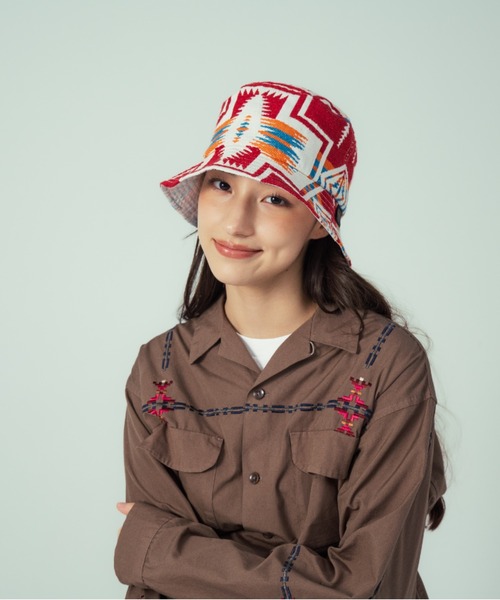 Pendletonの伝統的な柄を落とし込んだバゲットハット。ジャガードが織りなす色鮮やかな伝統柄が目を惹きます。鮮やかなテクスチャーがコーディネートにアクセントを加え、毎日の装いを格上げします。