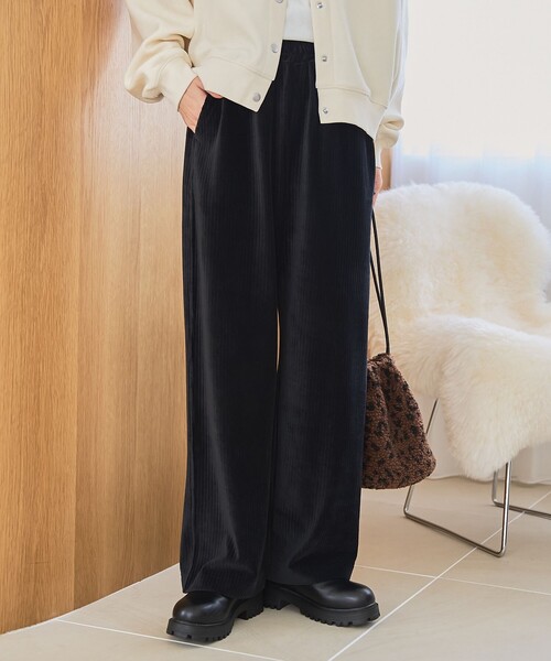 もちもち感触でリラックス。大人のイージーワイドパンツ。ファッション系インフルエンサー「ammy」様のInstagramリール投稿にてご紹介いただきました◎■デザイン/素材〇思わずヘビロテしたくなるもちもち感。 フェレットライクな柔らかくもちもちとした手触りが心地よいアイテム。〇上品な細目コーデュロイ 表面の細めの畝が上品な表情を生み、カジュアルながらも洗練された印象に仕上げました。〇履きやすさを重視したイージーパンツ ウエストはゴム+紐仕様でらくちん、ルーズでワイドなシルエットがリラックス感のある着こなしを叶えます。---------------------------------------------透け感:オフホワイトのみややあり生地の厚さ:普通光沢感:ややあり裏地:なしウエストゴム:ありサイドポケット:あり---------------------------------------------■コーディネートトップスはスウェットやニットなど、カジュアルなアイテムが高相性◎ジップパーカーを羽織ってストリートライクにまとめるのも今っぽさが出て◎スニーカーなどの靴とも相性抜群で、デイリー使いにぴったり。■スタッフ着用コメント《スタッフH》20代後半/身長:156cm/体型:普通/普段サイズ:M/着用サイズ:Mサイズ感:丈はぴったり。ワイドすぎず、すとんと落ちるきれいなシルエット。ゆるっと履きたい方はLサイズがおすすめです。素材感:もちもちとして滑らかな肌触り。思わずずっと触っていたくなる心地よさです。着心地:ウエストがゴム+紐仕様でラクに履けて、動きやすさも抜群。白はやや透けやすいのでペチパンツ必須。厚手すぎない生地感で、秋口にもぴったりです。※あくまで個人の感想です。【注意点】※他の衣類とは分けて洗うようお願いいたします。※濃色の場合は摩擦により他の衣類へ色移りすることがありますので、ご注意ください。※裏返しにして洗うことをおすすめいたします。※スチームアイロンで浮かしながらアイロンをかけ、その後ブラシで毛並みを整えてください。※毛羽抜けや粘着物(セロテープ等)との接触により毛羽が抜けることがありますので、ご注意ください。 毛羽立ちや白化を防ぐため、濡れた状態でのこすり洗いはお控えください。※ピリングしやすい製品であり、風合いを重視した商品ですので、毛玉が発生する場合がございます。 連日の着用はお避けいただき、毛玉ができた際は無理に引っ張らず、 生地を傷めないよう毛玉取り器やハサミなどで丁寧に取り除いてください。※本製品は滑らかで豊かな風合いを持っております。着用中の摩擦や静電気により、 重ね着した他の衣類に毛羽が付着することがございます。 必要以上の摩擦は毛羽脱落の原因となりますので、お避けください。※洗濯の際は多少の色落ちがございますため、できるだけ単品での洗濯をおすすめいたします。※濃色品は他の色物に色移りする場合がありますので、速やかに脱水・乾燥していただきますようお願いいたします。※撮影商品はサンプルの為、実際の仕様と異なる場合がございます。※画像の商品は光の照射や角度、お使いのモニター環境により、実物と色味が異なる場合がございます。スタジオ物撮りの画像が実物の色味に一番近くなっております。※予約商品の場合、お届け予定はあくまでも目安となります。生産の都合上、お届け時期が前後したり実店舗入荷時期とずれる場合がございますので、あらかじめご了承ください。品名:フェレットライクカットコールイージーWID品番:76406000022