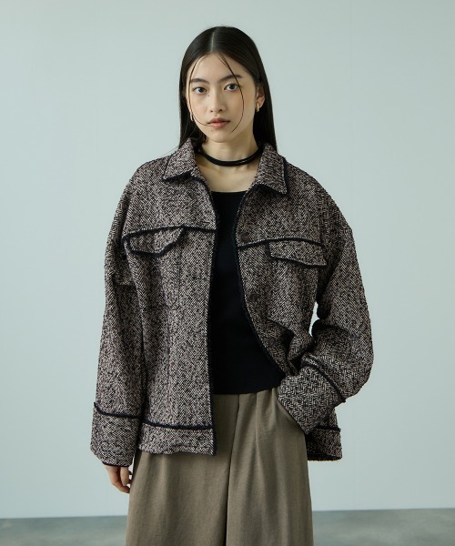 ●POINT胸に大きなフラップ付きポケットがついたCPOジャケットはネルシャツやGジャン感覚でデイリーにご着用しやすいライトアウターです。カジュアル感のあるデザインなので、ヘリンボーン柄のミックス見えテキスタイルでクラシックな印象をプラスして秋冬顔に。また、濃色のショートフリンジを効かせることで膨張感を抑えて引き締まった印象に。GジャンのかわりにツィーディなCPOジャケットにスイッチしてリラックスモードなコーディネートが気分です。ナロースカートやフレアスカート、ショート丈ボトムスとのコーディネートがおすすめです。----------------------------------透け感:なし厚さ: やや厚い伸縮性:なし裏地: なしポケット: あり--------------------------------------------------------------------------------------------------洗濯方法家庭洗濯:家庭での洗濯禁止。アイロン:アイロン仕上げ禁止。ドライクリーニング:石油系溶剤による弱いドライクリーニングができる。----------------------------------------------------------------■モデル身長 165cm 着用サイズ M※画像の商品はサンプルとなりますので実際の商品と仕様、加工、サイズが若干異なる場合がございます。※お客様のモニター環境により実際のお色と多少異なる場合がございます。※撮影状況や光の当たり具合により、色合いが異なって見える場合がございます。----------------------------------▼商品のお気に入り登録ハートマークをクリックし、お好きなカラーを選んでお気に入りに登録完売カラーの再入荷通知や、ラスト1点の通知、セールの通知も受け取ることができます。▼ブランドのお気に入り登録新商品や再入荷等、いち早くブランドのお得な情報を受け取ることができます。----------------------------------
