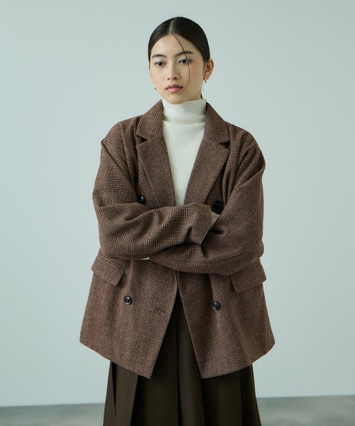 ●POINT細かな格子柄のミックス見えのツィーディジャコットは年々短くなる秋冬シーズンにおすすめのライトアウターです。まじめな印象になりやすいツィードジャケットはデイリー使いしやすいように肩を落としてリラクシーなフォルムに。艶感の感じられる素材のボトムスをあわせた質感ミックスのコーディネートやハーフレングスのボトムスをあわせた最旬バランスのコーディネートに。今シーズン注目のブラウン濃淡のカラー展開になっています。ベージュ~ブラウン系のワードローブが多い方にはブラウンカラー(赤みブラウン系)を、モノトーン系のワードローブが多い方にはブラウン系カラー(ダークブラウン系)のカラーがコーディネートしやすくおすすめです。----------------------------------透け感:なし厚さ: やや厚い伸縮性:なし裏地: ありポケット: あり--------------------------------------------------------------------------------------------------洗濯方法家庭洗濯:家庭での洗濯禁止。アイロン:底面温度120℃を限度としてアイロン仕上げができる。ドライクリーニング:石油系溶剤による弱いドライクリーニングができる。----------------------------------------------------------------■モデル身長 165cm 着用サイズ M※画像の商品はサンプルとなりますので実際の商品と仕様、加工、サイズが若干異なる場合がございます。※お客様のモニター環境により実際のお色と多少異なる場合がございます。※撮影状況や光の当たり具合により、色合いが異なって見える場合がございます。----------------------------------▼商品のお気に入り登録ハートマークをクリックし、お好きなカラーを選んでお気に入りに登録完売カラーの再入荷通知や、ラスト1点の通知、セールの通知も受け取ることができます。▼ブランドのお気に入り登録新商品や再入荷等、いち早くブランドのお得な情報を受け取ることができます。----------------------------------