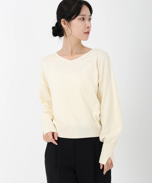*ソフティカシミヤ上質なカシミヤ混素材で仕立てた2WAY袖口パールニットは、肌に触れた瞬間に感じる柔らかさと、品のある表情が魅力の一枚。袖口には小粒のパールをあしらい、手元にさりげない華やかさをプラス。アクセサリー要らずで、女性らしさがぐっと引き立ちます。前後どちらでも着られる2WAY仕様で、クルーネックとVネック、気分に合わせたスタイリングが楽しめるのも嬉しいポイント。ややゆとりのあるシルエットが、身体をふんわりと包み込み、着心地も抜群。スカートともパンツとも相性がよく、オン・オフ問わず幅広く活躍してくれる万能ニットです。洗濯:洗濯機使用可能(ネット使用)《お気に入り登録》はお得がいっぱい!「商品」のお気に入り登録で、再入荷、ラスト1点、セールなどお得な通知を受け取ることができます。「ブランド」のお気に入り登録で、新商品や再入荷などいち早くブランドの情報を受け取ることができます。是非、この機会にご登録くださいませ。