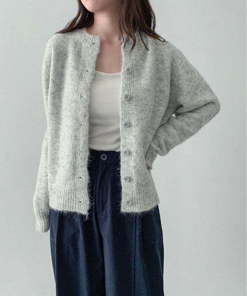 【on:nue】ウール混シックカーディガンWOOL BLEND CHIC CARDIGAN■Point上品なウール混メランジニットカーディガンやわらかく温もりのある質感程よい厚みで軽やかに羽織れる高密度ニット編みシンプルながらも立体的なシルエットで大人っぽく■Designなめらかな肌触りのウールブレンド素材を使用し、軽さとあたたかさを両立した一枚。編み地はきゅっと目が詰まり、肉厚すぎないのにしっかりと形を保ちます。シンプルなデザインながら、着たときのラインが美しく映えるよう計算されており、上品なツヤを帯びた表面感が高級感を演出。袖の落ち感や裾のリブ仕上げなど、さりげないディテールがクリーンな印象に導きます。■Styling細身のデニムに合わせて抜け感のあるカジュアルスタイルに。ロングスカートやワンピースの上にさらっと羽織れば、柔らかく女性らしい雰囲気に。スラックスやシャツと組み合わせて、オフィスシーンでも品よくまとまる万能なニットカーディガンです。■Detail透け感:なし伸縮性:あり光沢感:なし生地の厚み:厚いポケット:なし裏地:なし*ご覧のモニター環境や撮影環境に応じて実際商品の色と異なって見える場合がございますので、ご了承下さい。*素材の特性を考慮して管理法留意事項を購入/着用する場合は必ず確認お願いします。※取り扱い上のご注意商品の特性上、シルエットを保つため、保管の際はハンガーではなく、たたみ保管にしてください。伸縮性のある素材を使用しております為、一点一点多少大きさが異なります。 ※素材の性質上、染料のにおいが多少感じられる場合がございます。数日のご使用や陰干しなどで気になる匂いはほとんど感じられなくなりますので、お試しください。※生地の性質上、着用を重ねますと丈が伸びる可能性がございますのでご了承ください。【 on:nue 】「年を重ねてもおしゃれを楽しみたい大人の女性へ、抜け感のある韓国モードをさりげなく取り入れた上質で長く着られる服」 をコンセプトに韓国大人女子コーデが叶うアイテムをお届けするby muni:rの姉妹ブランドです。■商品お気に入り登録[お気に入り登録] を押すと登録完了!お好きなアイテムとサイズのカラーを登録すると再入荷、販売のお知らせ等を受け取れます。■ブランドお気に入り登録新商品/お買い得情報/クーポン等の通知をいち早く受け取れます。ブランドの最新情報はinstagram[@onnue_official]でご確認頂けます。*注文履歴ページよりご注文頂いた商品の配送時間を確認できます。*他のキャンペーンにより、価格が変わる場合があります。