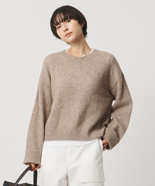 ロールアップがさりげない、冬の空気に似合うニット ■デザイン ゆったりとしたシルエットのボディと袖のクルーネックニット。 袖の先はロールアップのデザインで、ベーシックになりがちなクルーネックのアクセントになっています。 短めの着丈で重たく見えすぎないバランスなのも嬉しいポイント。 ■素材 上質なアルパカ素材・ウール素材を組み合わせた起毛素材。 あたたかみのある柔らかさと、軽い風合いが魅力です。 芯糸に極細のナイロン糸を使用しており、ほどよくハリを保ちます。 ■コーディネート ワイドパンツはもちろん、すっきりとしたシルエットのナロースカートなど、様々なシルエットのボトムスと好相性です。 ・同素材のVネックタイプもご用意がございます。対象品番:15131063225 ============================ 裏地:なし 透け感:なし 光沢感:なし ケア方法:ドライクリーニング ============================ 【注意事項】 ※商品に「取り扱い上の注意書き」、「洗濯表示」がございます場合は、使用前に必ずご確認ください。 ※商品画像は、光の当たり具合やパソコンなどの閲覧環境により、実際の色味と異なって見える場合がございます。あらかじめご了承ください。 ※商品の色味の目安は、商品単体の画像をご参照ください。 店舗へお問い合わせの際は、全国のUNITED ARROWS各店舗まで下記の品名/品番をお申し付けください。 品名:UWSC WIDE/SL PO 品番:15131063226