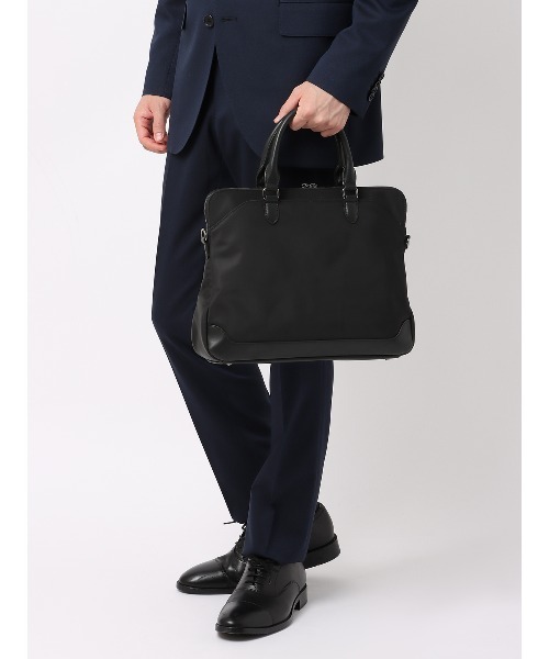 程良い薄マチで幅を取らず、スマートに持ち歩けるブリーフケース。軽量でコンパクトなサイズ感ながら、A4ファイルやPCなど必要なものはきちんと収納出来ます。 撥水加工により、急な雨でも安心です。 ・撥水加工付きの高密度ツイルナイロン生地を採用 ・持ち手と下部は、摩擦などにも強いフェイクレザーを使用 ・内装のスウェード調素材や磨き加工した金属ファスナーなど、高級感のある仕様 ・書類、小物、PC(13インチまで)を整理収納しやすい内装配置 ・肩掛けが出来るショルダーベルト付き 【仕様】あおりポケット/底鋲/ショルダーストラップ付き 【内仕様】内ポケット×2/クッション材入りPCポケット 【重さ】560g 高さ29.0cm 横幅35.0cm 底幅37.0cm マチ幅8.0cm 持ち手35.0cm ※商品の仕上がりサイズ(出来上がり寸法)は上記のサイズ表をご覧下さい。 ※同サイズまたは同一商品でも、生産の過程で1.0cm~2.0cm程度の個体差や着用感の違いが生じる場合がございます。 ※カラー名は管理用の表記となります。実際の商品の色味は商品画像をご確認ください。 ※商品画像はできる限り実際の色に近づけて掲載しておりますが、パソコン環境により色味に誤差が生じる場合がございます。予めご了承下さいませ。
