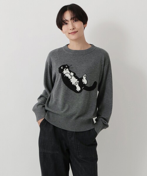 韓国人気アーティストのチェ・ヨンジュとコラボレーションしたプルオーバーです。 ハチワレネコのモチーフをジャカード編みで表現し、存在感のある見た目に仕上げました。仰向けのポーズや表情も愛らしく、スタイリングの主役としても活躍します。背面の裾付近にはさりげなくネズミのデザインをあしらっているのもポイントです。 裾や襟、袖まわりはリブで切り替えることで、バランスの良いシルエットに。シンプルなパンツに合わせるだけでも様になるので、ワードローブに備えておけば着まわしに便利です。 Illustrator | チェ・ヨンジュ 父親と「HUGINN AND MUNINN」(フギンアンドムニン)を運営。 はじめての絵本『Mo Story』が、2024年ボローニャ・ラガッツィ賞のOpera Prima部門で特別賞を受賞。 *濃色製品は色落ちしますので他のものと分けて洗濯してください。洗濯前のつけ置きや濡れたままで長時間放置しないでください。 *洗濯の際はネットを使用してください。 *アイロンを掛ける際はあて布を使用してください。