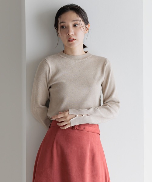 袖口のメタルボタンがさりげなくアクセントになるハイゲージニット。プチハイネックで首元もきれいに見え上品な印象を与えます。総針編みで普段使いにはもちろんオフィスカジュアルなどにも重宝する1枚です。程よくゆとりのあるサイジングでコートインにも着やすいニットです。※ベージュのみラメ糸を使用しています。※屋内外の光や照明の当たり具合で、実際の商品の色味とカラー別画像の色味に違いが発生する場合がございます。色味はスタジオ撮影の詳細画像にてご確認ください。※生地の寄り画像が最も実物に近い色味となります。ーーーーーーーーーーーーーーーーーーーーーーー▼ 商品のお気に入り登録 ▼完売カラーの再入荷通知や、ラスト1点の通知、クーポン開始、セールの通知も受け取ることができます。▼ ブランドのお気に入り登録 ▼新商品や再入荷など、ブランドのお得な情報をいち早くお知らせ!ぜひご登録ください!